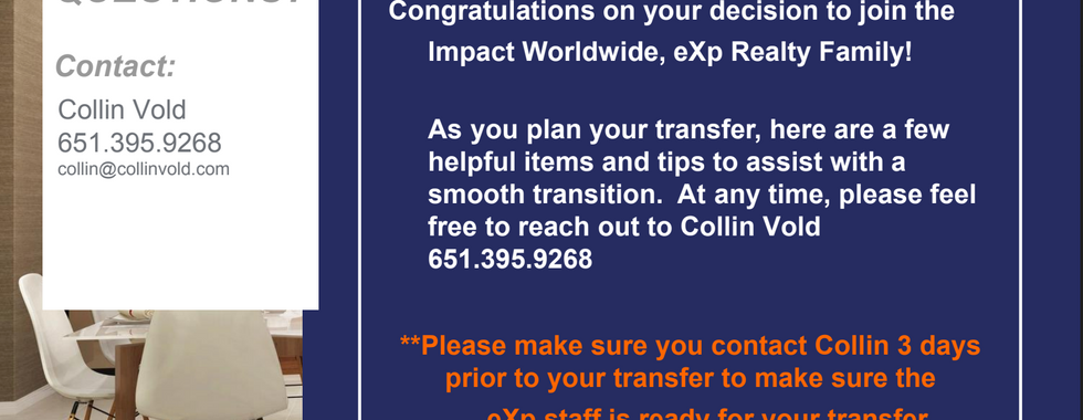 Are you a Minnesota real estate agent ready to transfer to EXP Realty? Collin VoldDec 2, 20231 min readHere is the link to submit your application! Collin MN WI Pre-Transfer (1) (3).pdfDownload PDF • 1.05MB